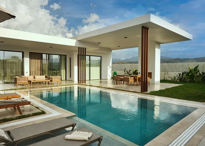 A kertre néző terasszal rendelkező 3 hálószobás Ashta Suites / Minimal Suite Fethiye villa 47 perces autóútra fekszik a Dalaman (DLM-Dalaman nemzetkozi ) repülőtértől. A szálláshely úszómedencét, valamint pezsgőfürdőt, szaunát és beltéri medencét kínál, hogy egy fárasztó nap után kikapcsolódhasson.